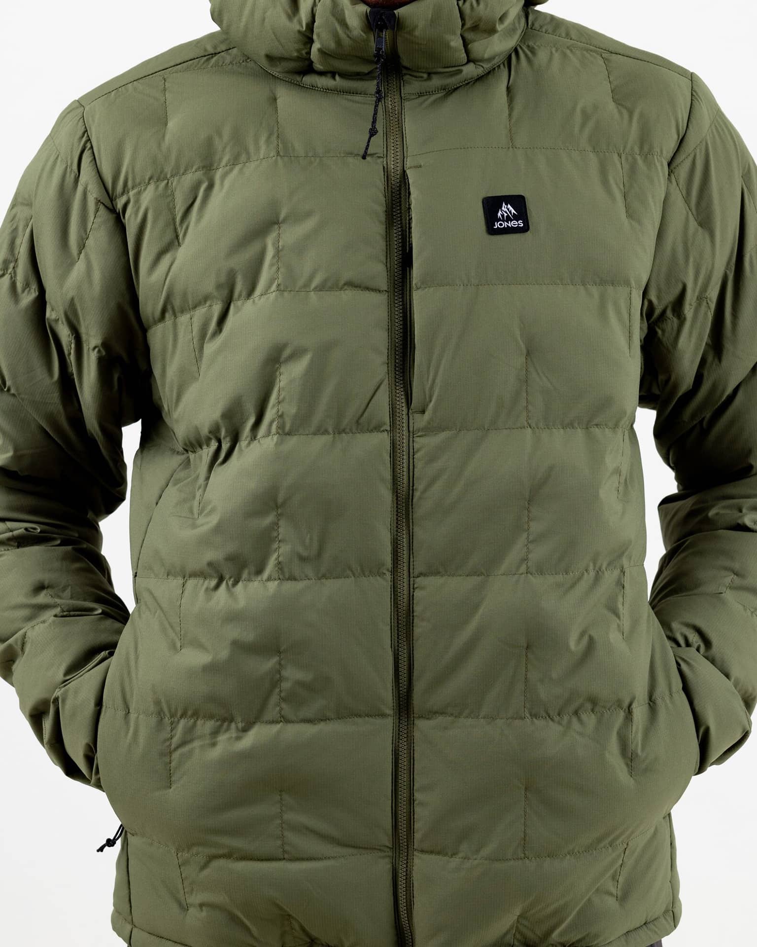 100%リサイクルの4WAYストレッチ・ポリエステルを使用し、PFCフリーの耐久撥水加工(DWR)を施したシェル。中綿には100%リサイクルのAir Flake合成インサレーションを採用。