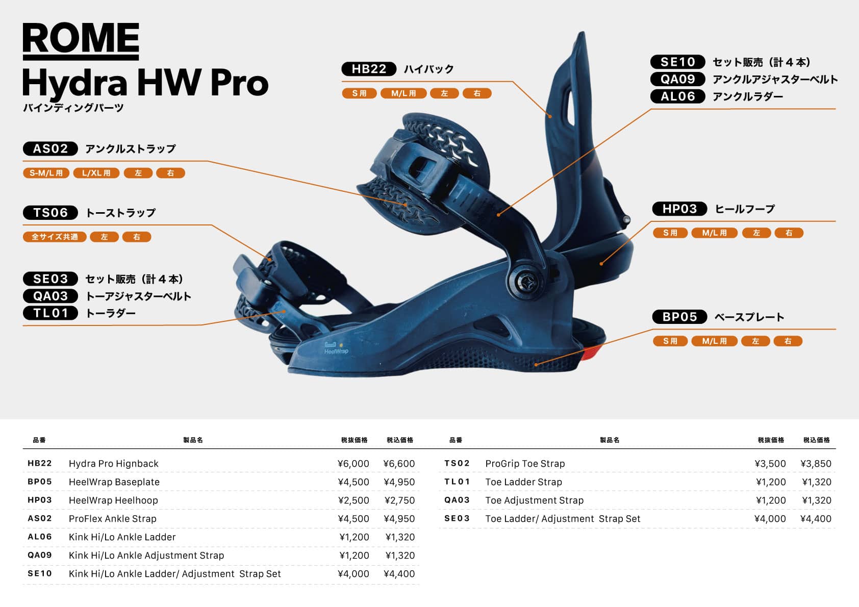 スノーボード用バインディングの交換パーツは、ハスコ公式サイトからもご購入いただけます。ご注文の際は必ずお手持ちのバインディングと適合するパーツ番号をご確認ください。